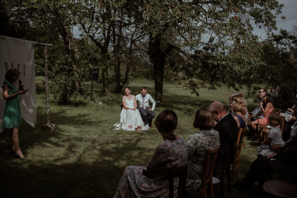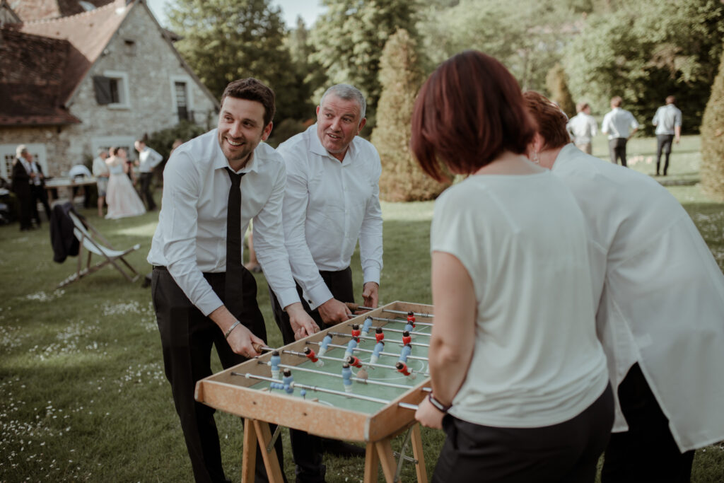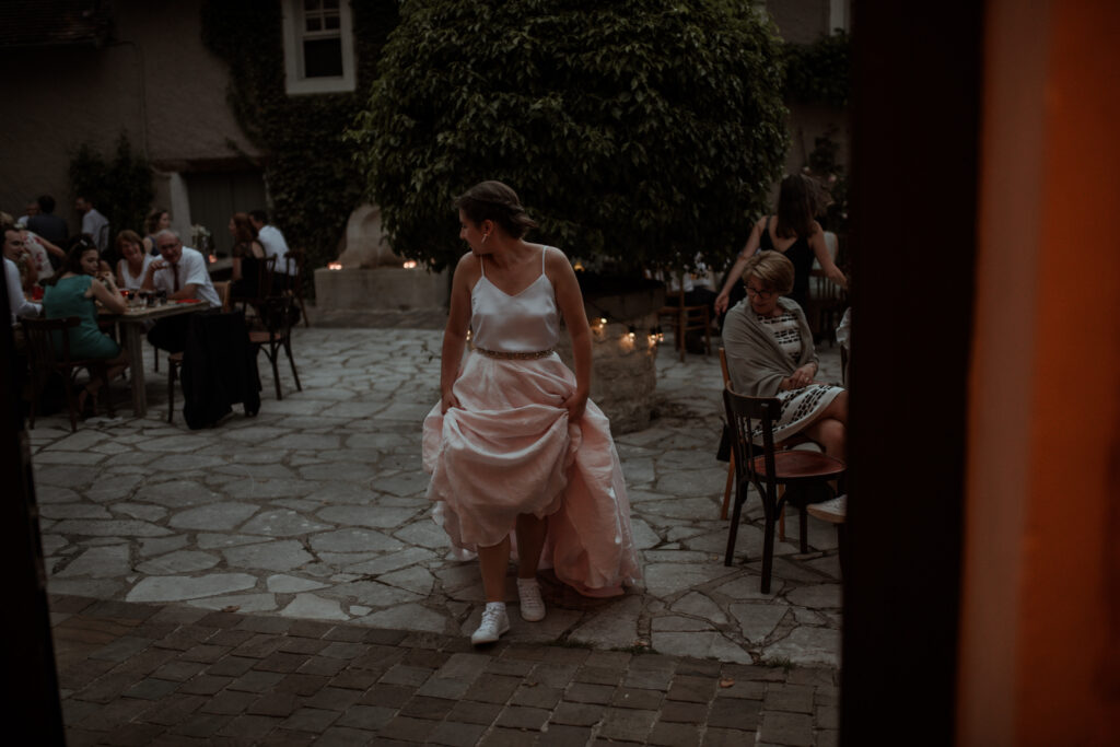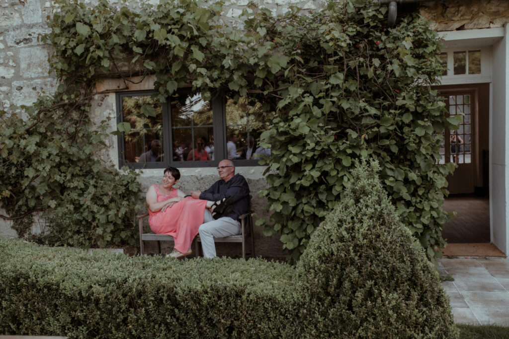 As the evening settled in, everyone gathered in the courtyard beneath strings of festoon lights. The glow was soft and warm, spilling across the tables and stone walls as the night slowly unfolded. Conversations drifted between French and English, glasses clinked, and music carried through the air. Those are always the moments I look for. The quiet interactions. The laughter that happens when nobody realises they are being photographed. A hand resting on someone’s shoulder, a glance across the table, the small gestures that say everything.