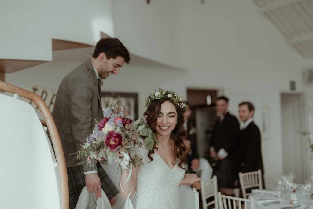 A wedding at Crear is as much about the people as it is about the setting. Guests wandering through the grounds, laughter echoing under the beams, and fleeting glances between the couple all become part of the story. Photographing these moments is about observing rather than orchestrating, and Crear provides the perfect backdrop for that kind of documentary style. The architecture, the surrounding landscape, and the light all contribute to images that feel authentic and timeless.