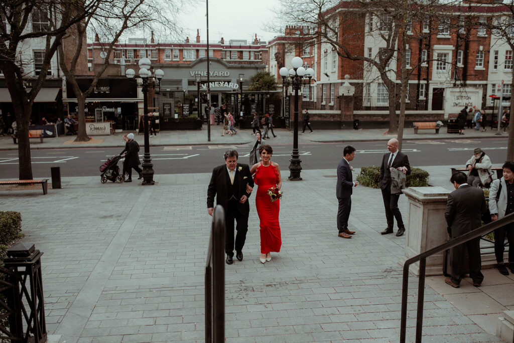 The bride, radiant in a beautiful red dress, stood beside her groom as they exchanged vows in the historic halls of Islington Town Hall. The venue’s timeless elegance provided the perfect backdrop for their “I dos,” with every detail reflecting their unique style and personality. As emotions ran high, I captured every heartfelt moment with precision and artistry.