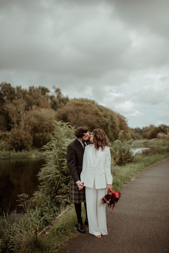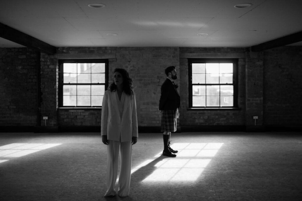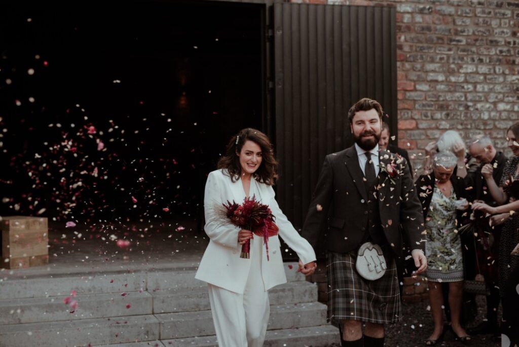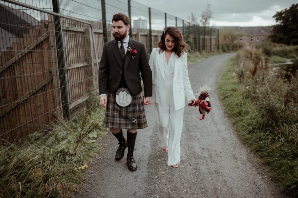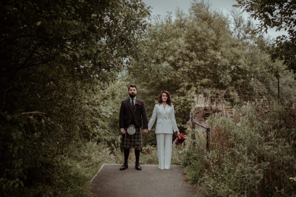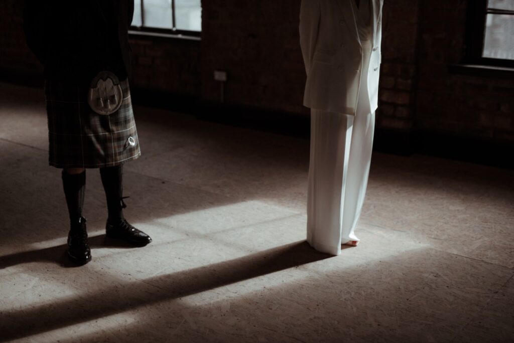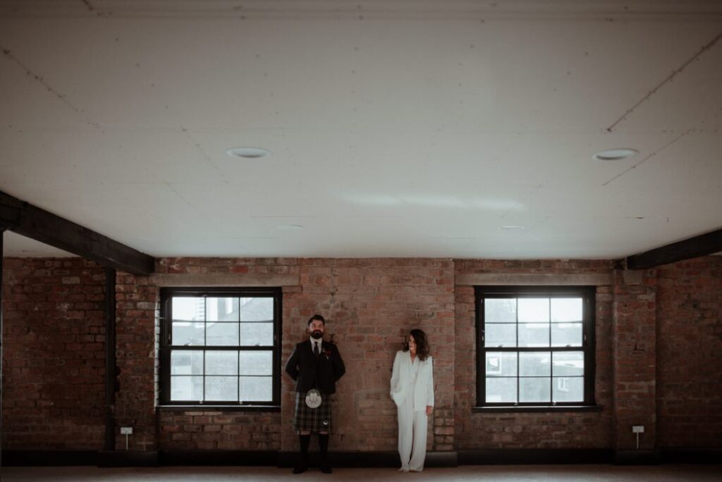 Hey there, lovebirds! Are you ready to embark on an extraordinary journey of love in the heart of Glasgow? If you’re searching for a Glasgow wedding photographer who can capture the essence of your low-key, urban wedding, look no further! I absolutely adore shooting weddings, especially when they’re as stylish and unique as the one I had the pleasure of capturing at the Engine Works in Glasgow. Let me take you on a little journey through this early autumn celebration, where the bride rocked a super chic white suit, and the venue exuded an industrial, New York loft vibe.