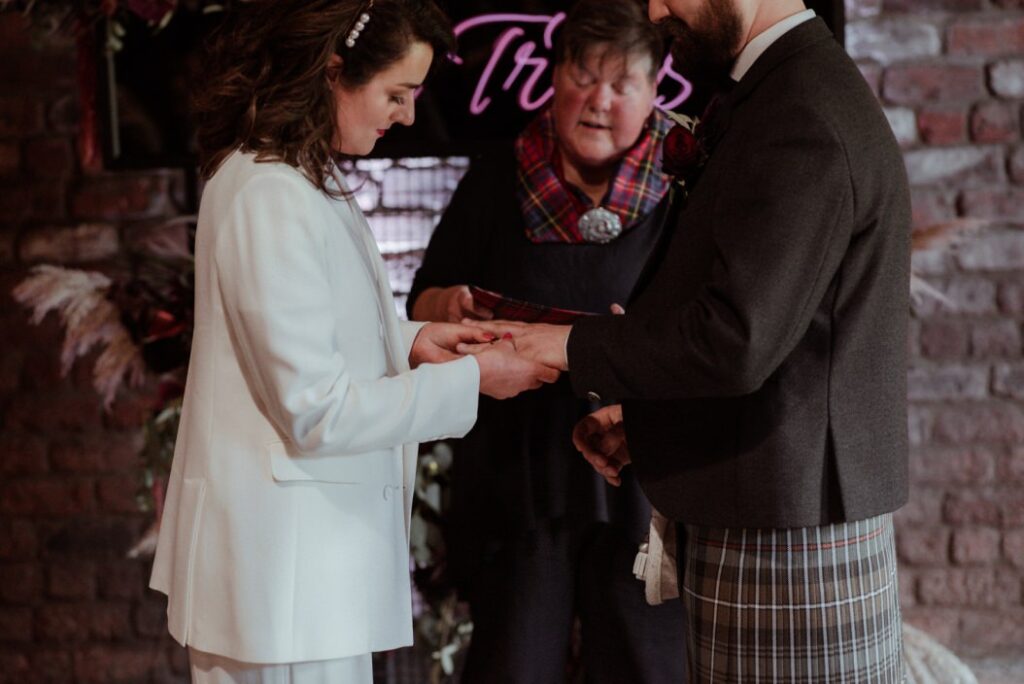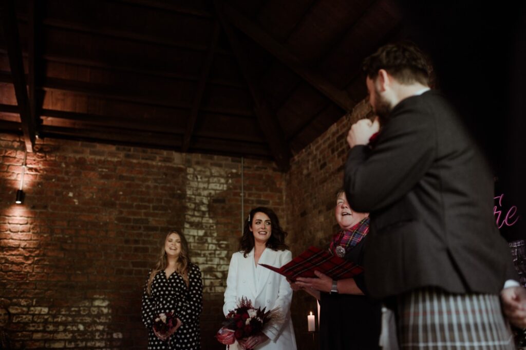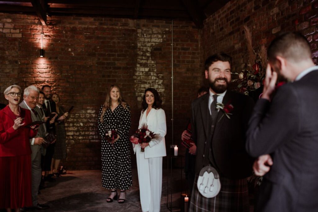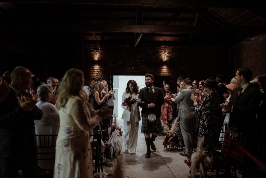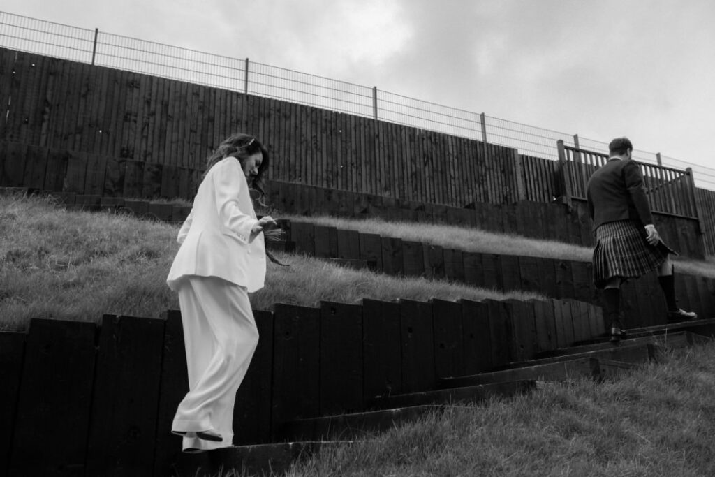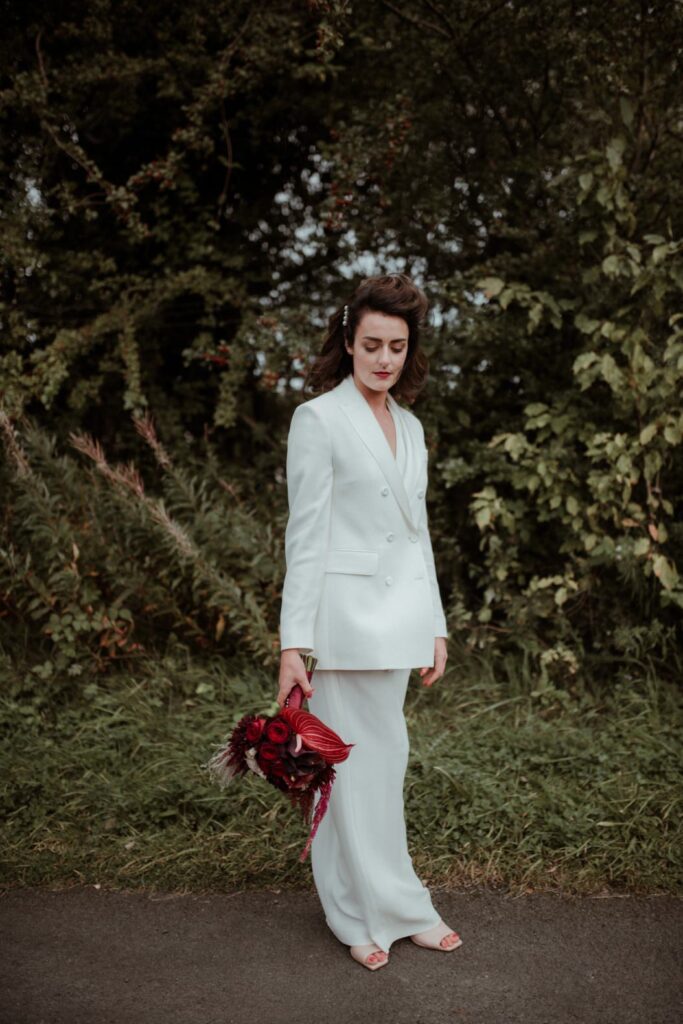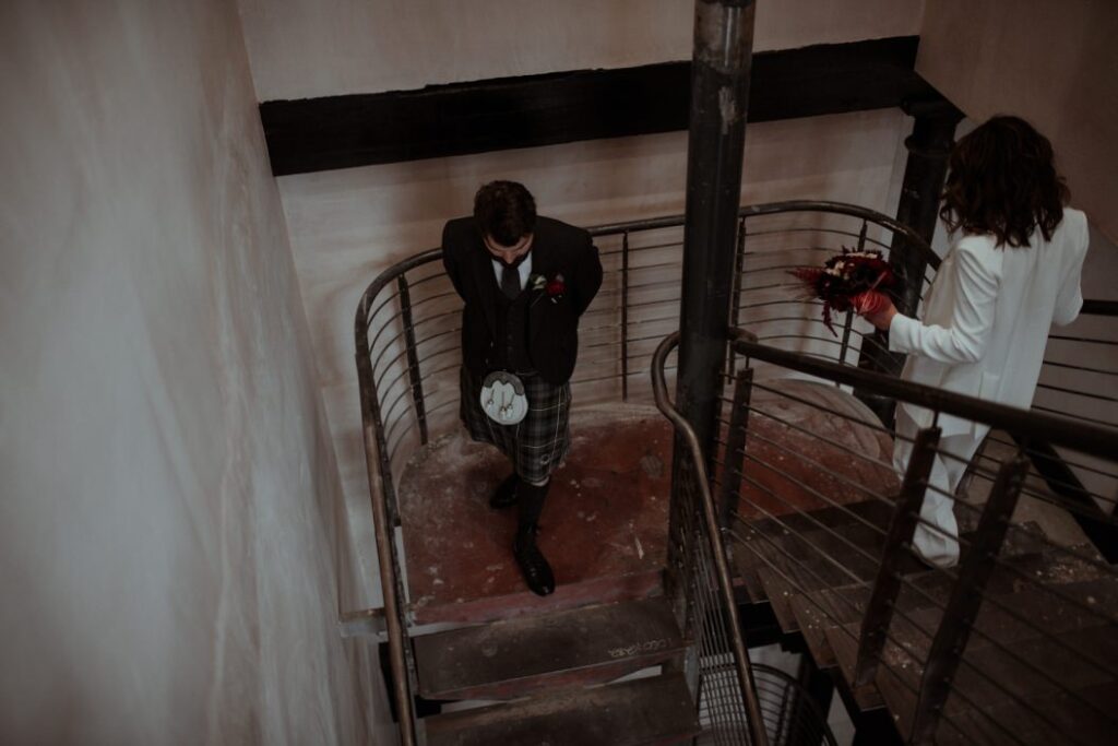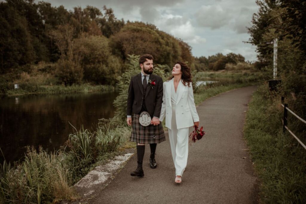 Hey there, lovebirds! Are you ready to embark on an extraordinary journey of love in the heart of Glasgow? If you’re searching for a Glasgow wedding photographer who can capture the essence of your low-key, urban wedding, look no further! I absolutely adore shooting weddings, especially when they’re as stylish and unique as the one I had the pleasure of capturing at the Engine Works in Glasgow. Let me take you on a little journey through this early autumn celebration, where the bride rocked a super chic white suit, and the venue exuded an industrial, New York loft vibe.