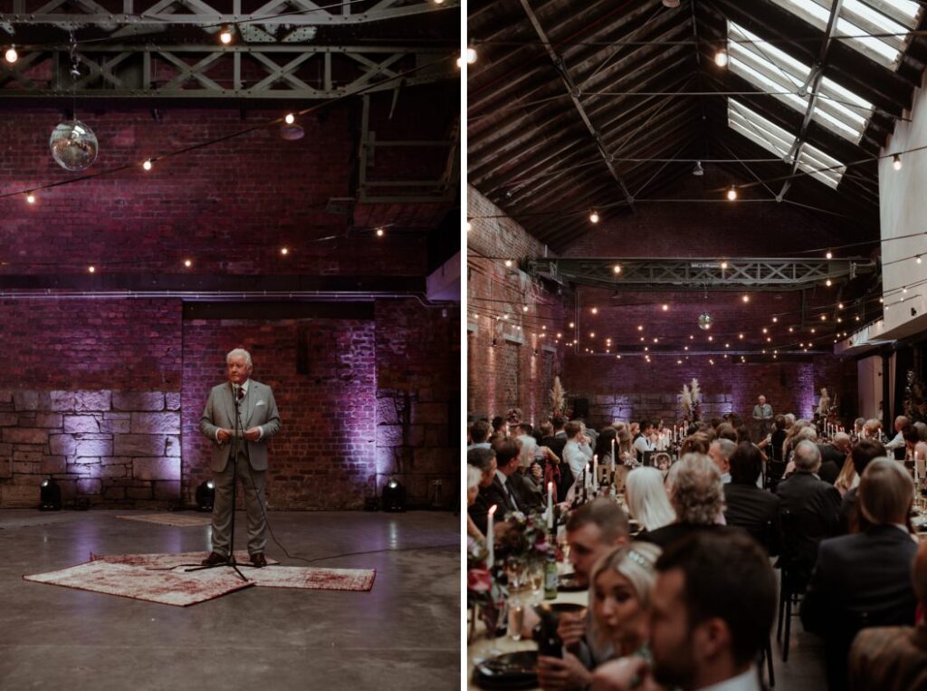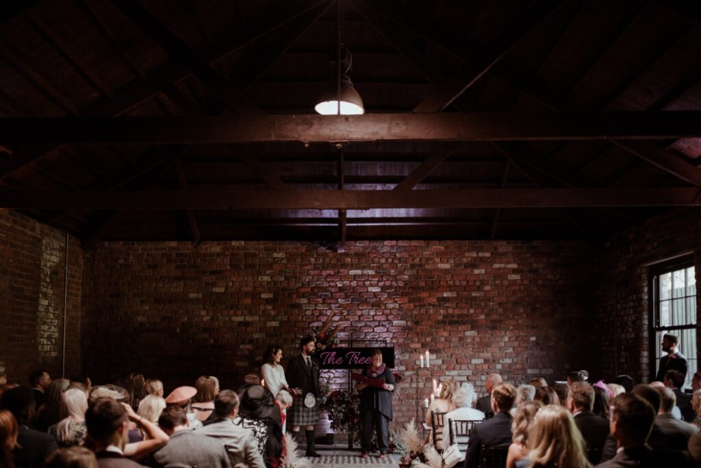 There is something about the Engine Works that feels instantly cinematic. Maybe it is the scale of the space. The soaring ceilings, exposed brick, and industrial architecture softened by warm light. It has that rare balance of raw character and quiet elegance, the kind of setting that feels more like a New York loft than a traditional wedding venue. I grew up not far from here, so photographing a wedding at the Engine Works always feels a little personal. It is one of those Glasgow venues that manages to feel both grand and intimate at the same time. Perfect for couples who want something a little different from the usual wedding setting.